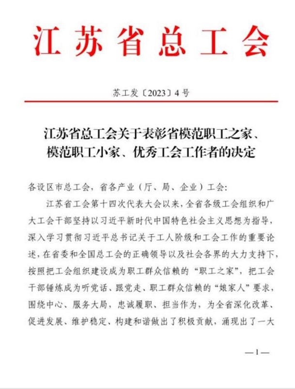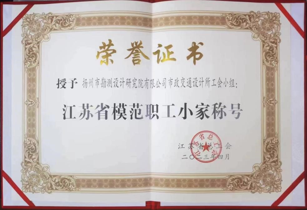 近日,江蘇省總工會印發(fā)《關(guān)于表彰江蘇省模范職工之家、模范職工小家、優(yōu)秀工會工作者的決定》,揚(yáng)州市勘測設(shè)計(jì)研究院有限公司市政交通設(shè)計(jì)所工會小組被江蘇省總工會授予“江蘇省模范職工之家”稱號。